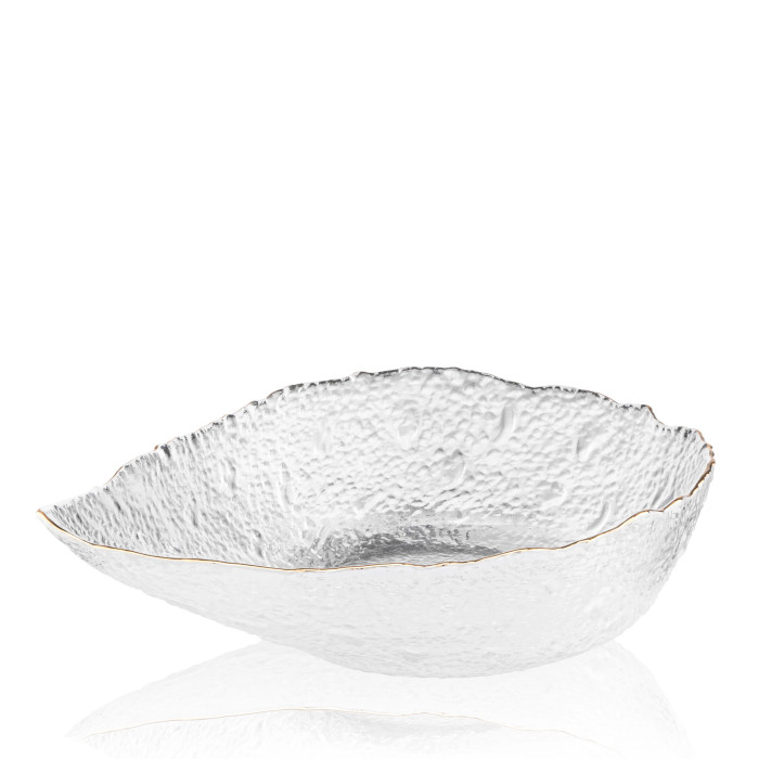 Салатник Leaf вироблено з якісного скла, має рифлену поверхню, що додає йому витонченого шарму. Розміром 16 × 21,5 см і заввишки 6,2 см цей прозорий салатник стане чудовим акцентом столового сервірування, підкреслюючи красу поданих страв. Виріб не призначено для використання в посудомийній машині чи мікрохвильовій печі. Дбайливий ручний догляд забезпечує тривале слугування посуду й незмінну прозорість.