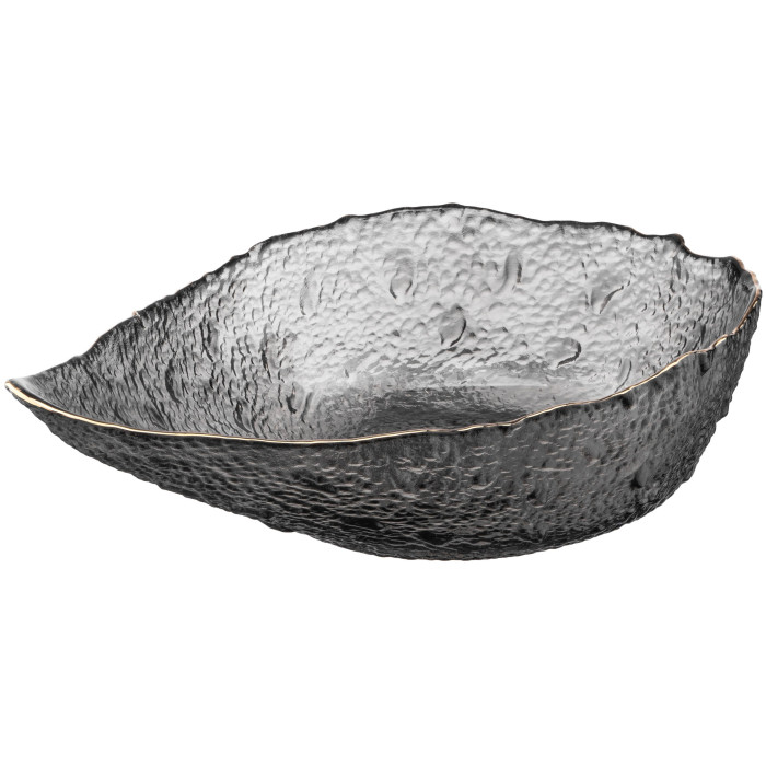 Салатник Leaf вироблено якісного скла, має рифлену поверхню, що додає йому унікального шарму й елегантності. Розмір 16 × 21,5 см і висота 6,2 см роблять посуд оптимальним для подавання салатів, закусок чи десертів. Напівпрозорий сірий колір додає виробу вишуканості, тож він згодиться для сервірування як повсякденних трапез, так і святкових обідів. Салатник не призначено для використання в посудомийній машині чи мікрохвильовій печі. Дбайливий ручний догляд забезпечує тривале слугування виробу й незмінну прозорість.