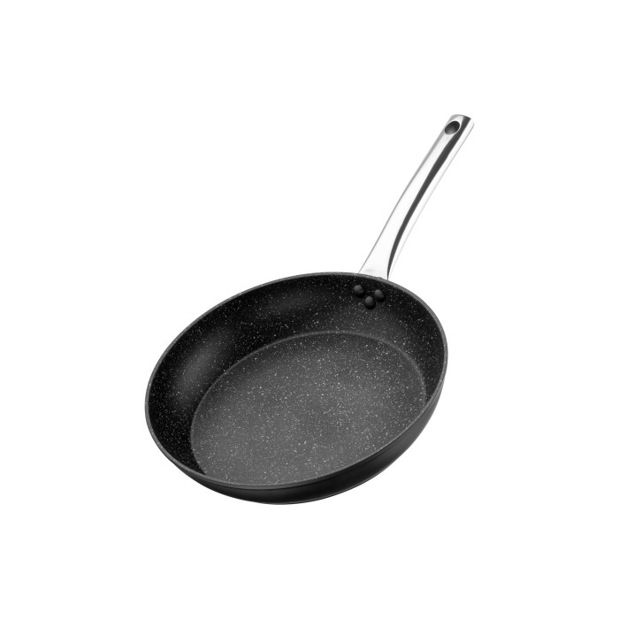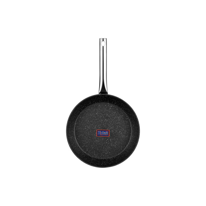 Сковорода диаметром 28 см отличается универсальностью, ведь пригодна для использования чуть ли не на всех видах плит, в частности: газовых, галогенных, индукционных, стеклокерамических и индукционных. Изготовлена из кованого алюминия, модель высотой 5 см имеет толщину стенок 2,6/4 мм, а дна – 2,6 мм. Конструкцией предусмотрена крепкая рукоятка из нержавеющей стали, на внутреннюю поверхность нанесено противопригарное покрытие Xylan Plus. Сковорода легка по уходу, допустимо мыть в посудомоечной машине.
