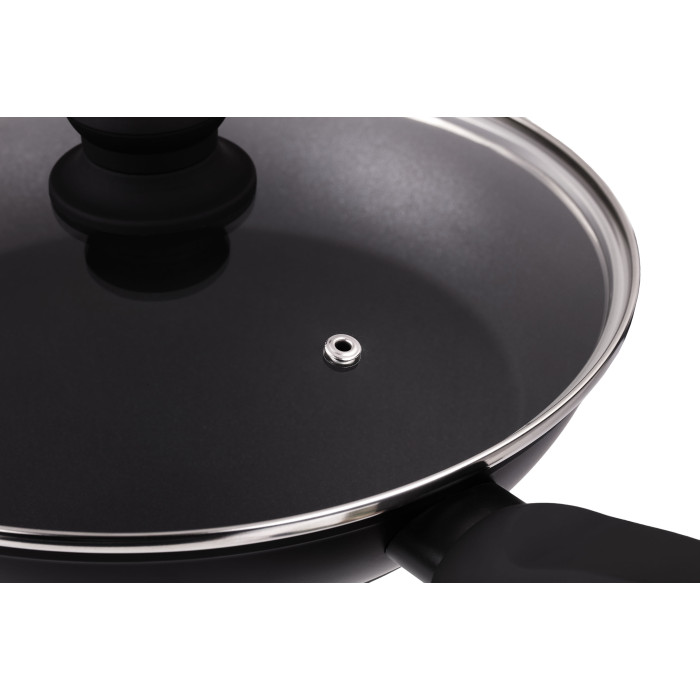 Сковорідка Gemini Gourmet Aosta діаметром 26 см вироблена з кованого алюмінію, товщина стінок за висоти 4,8 см складає 2,2 мм, а дна – 4 мм. Внутрішня поверхня має протипригарне покриття, а руків’я– soft-touch. Сковорода постачається в комплекті з кришкою, сумісна з усіма видами плит – газові, галогенні, індукційні, склокерамічні, електричні.