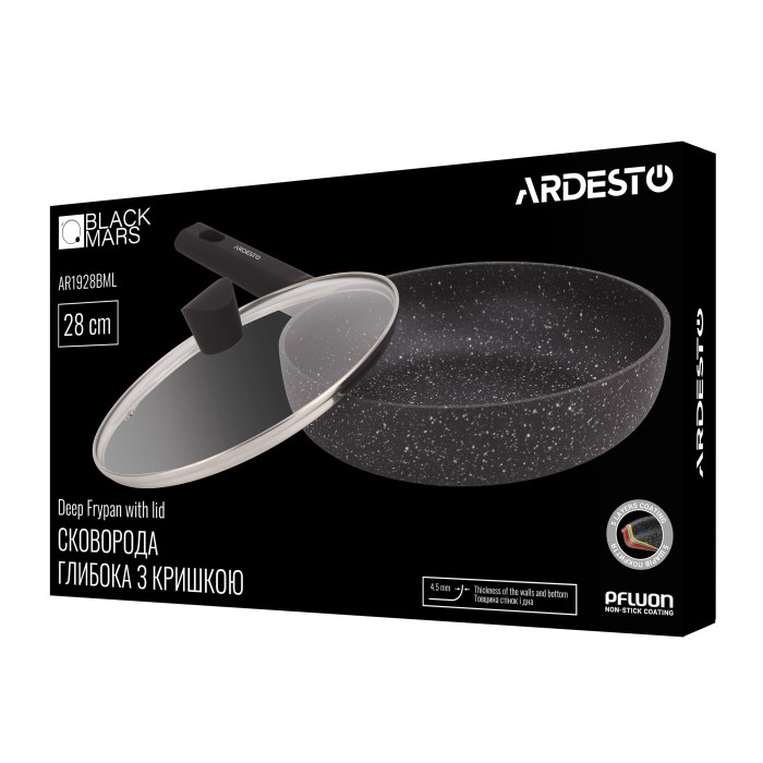 ARDESTO Сковорода глибока з кришкою Black Mars Alcor, 28см, алюміній, чорний