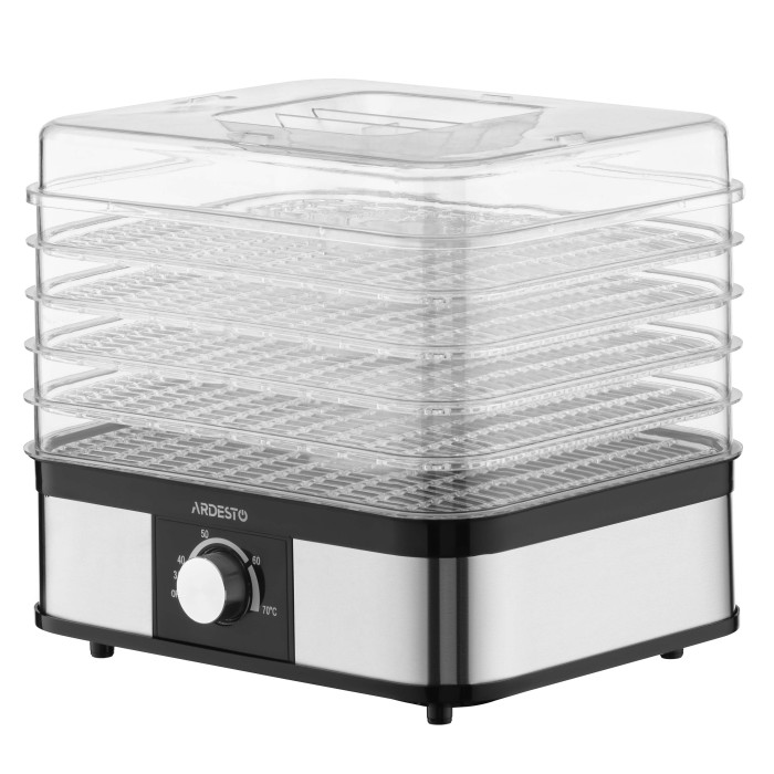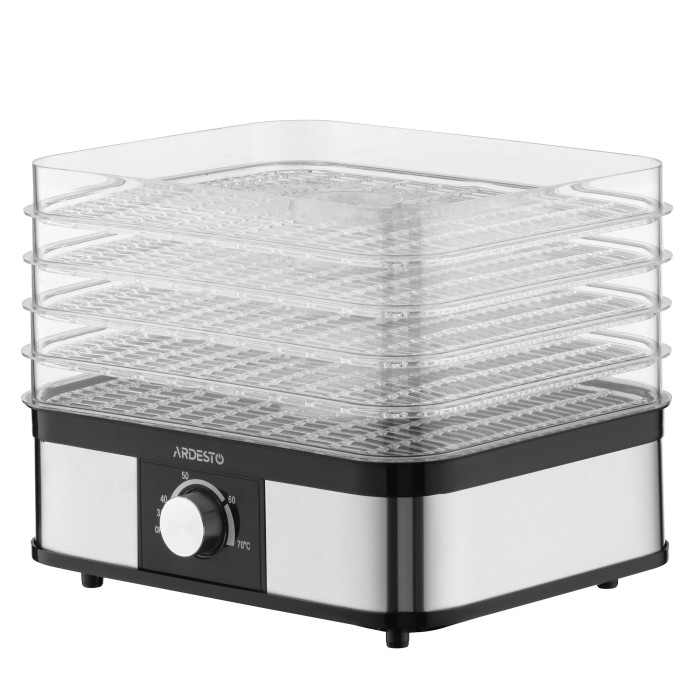 ARDESTO Сушарка для продуктів 550Вт, піддонів - 5x3см, макс - 70°С, пластик, чорний+нерж