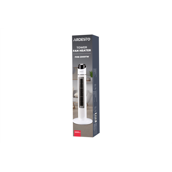 Тепловентилятор колонного типа ARDESTO FHB-2000TW белого цвета, высотой 87 см, с керамическим нагревательным элементом PTC, мощностью 2 000 Вт.