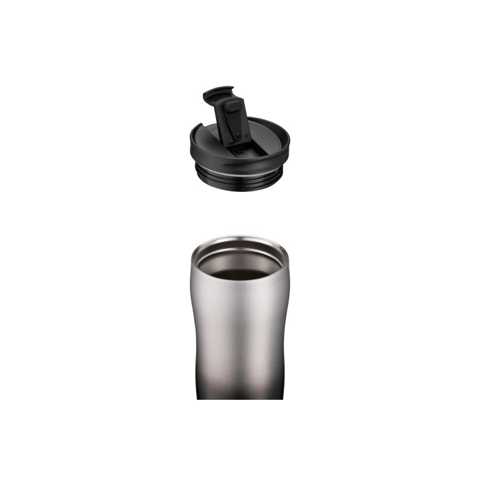 Термокухоль ARDESTO Metallic виготовлено в ергономічному дизайні з високоякісної нержавіючої сталі. Механізм відкривання термокухля – зручна кришка-заскочка. Об’єм становить 450 мл. Термокухоль зберігає температуру гарячого напою 8 год, холодного – 16 год. Не містить BPA. Не рекомендовано мити в посудомийній машині.
