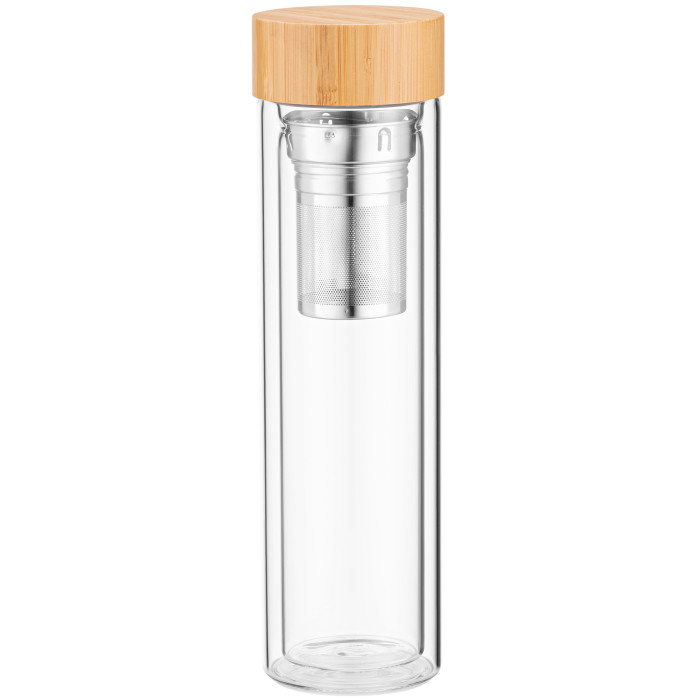 Вироблений із боросилікатного скла, термос із подвійними стінками ARDESTO об’ємом 450 мл підтримує оптимальну температуру улюбленого напою – як холодного, так і гарячого – упродовж 2 год. Ситечко з нержавіючої сталі забезпечує можливість легко заварювати чай прямо в термосі, а бамбукова кришка додає ноток природної елегантності. Діапазон термостійкості – від -20 до +150 °C, до того ж термос придатний до миття в посудомийній машині.