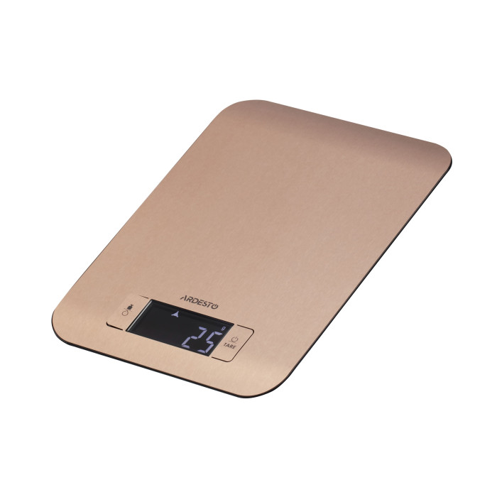 Стильні електронні кухонні ваги ARDESTO SCK-898R з поверхнею з нержавіючої сталі коричневого кольору розміром 20 × 18 см пасуватимуть до інтер’єру будь-якої кухні. Вони допоможуть точно відміряти інгредієнти, контролювати страви, що особливо важливо під час дієти чи спортивного харчування, та якісно відтворювати рецепти з кулінарних книжок і блогів.