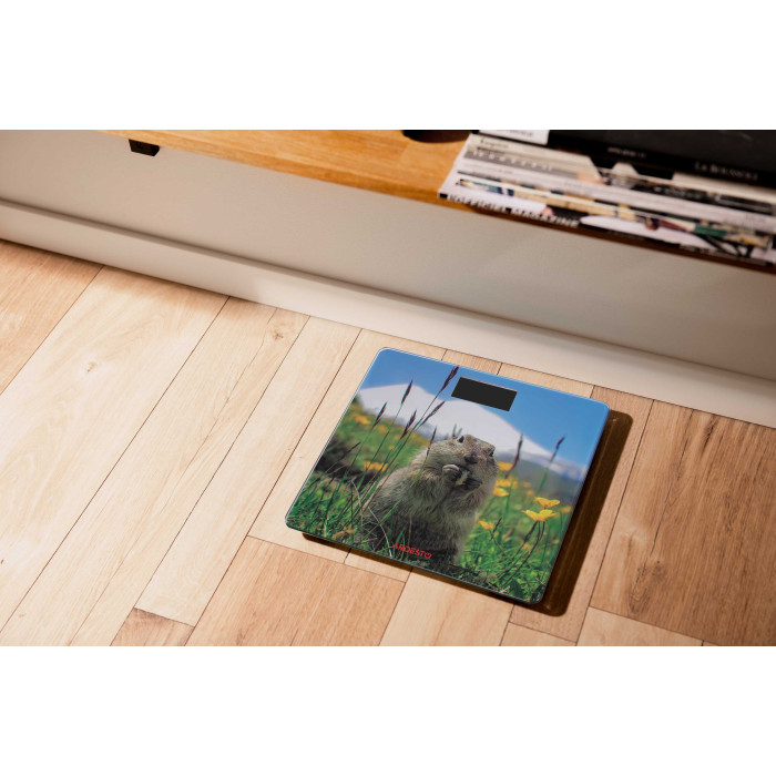 Підлогові ваги з дизайнерським малюнком. Призначені для вимірювання маси тіла та оснащені вбудованим термометром і функцією порівняння попередньої ваги. Модель SCB-965MARMOT виконана в ексклюзивному дизайні.