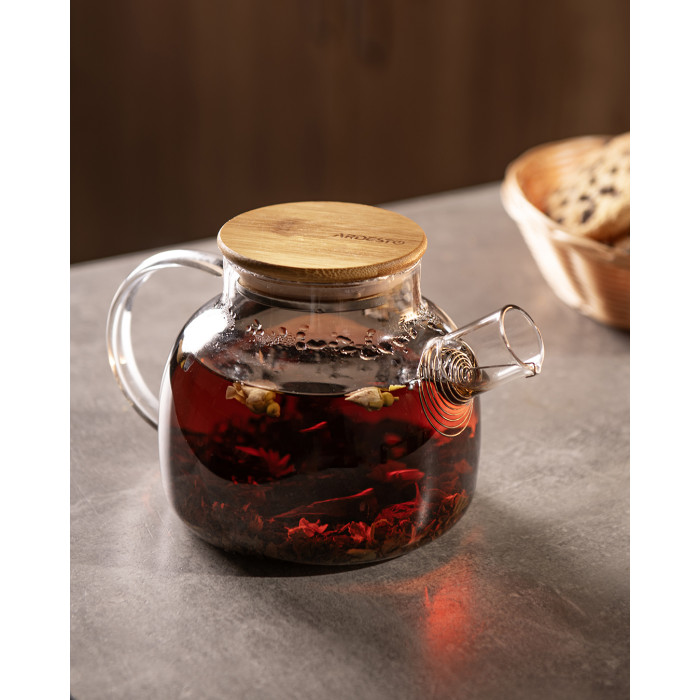 ARDESTO Заварник Gemini 1000мл, боросилікатне скло, бамбук, прозорий
