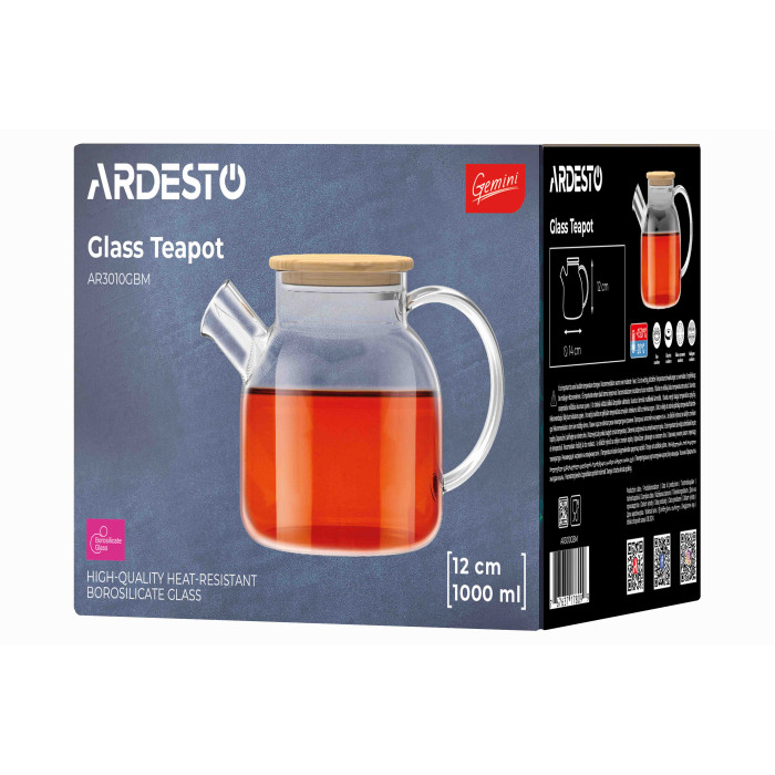 Заварник ARDESTO Gemini – елегантний аксесуар для любителів чаю, який виготовлено з термостійкого боросилікатного скла. Він є втіленням елегантності та практичності, тоді як бамбукова кришка додає природного шарму. Об’єм – 1 000 мл, прозорий дизайн надає змогу насолоджуватись процесом заварювання, а завдяки максимальному діаметру 14 см і висоті 12 см забезпечено зручність використання. Заварник сумісний із різними видами плит, зокрема газовими, електричними та склокерамічними, його можна нагрівати на помірному вогні, адже діапазон термостійкості – від -20 до +150 °C. Легкий догляд гарантовано завдяки можливості миття в посудомийній машині (без бамбукової кришки).