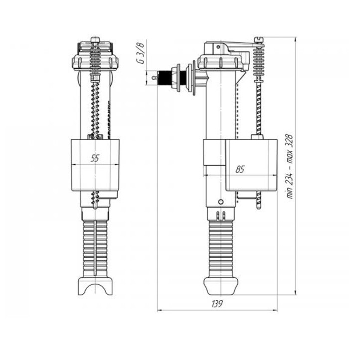 Арматура ANIplast 3/8" WC5030EU з пластиковим штуцером - ідеальне рішення для вашого бачка. Виготовлена з високоякісного пластику, вона гарантує довгий термін служби та надійність. Комплектація включає наливний клапан для ефективного заповнення бачка водою, а також бічне підключення з пластиковим різьбленням, що забезпечує герметичність і надійне з'єднання.