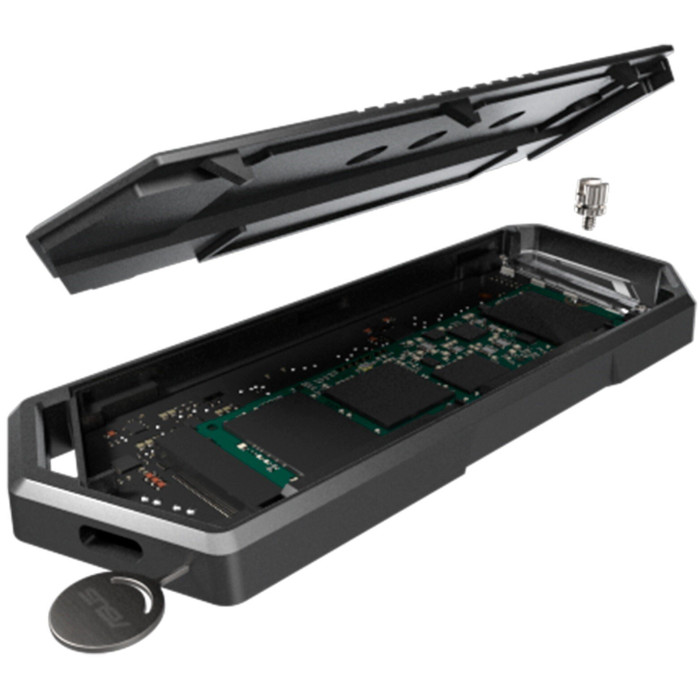 Контейнер для NVMe-накопителей ROG Strix Arion (ESD-S1C): интерфейс USB 3.2 Gen2 Type-C (10 Гбит/с), два кабеля (USB-C -> C и USB-C -> A), установка накопителя без инструментов, термопрокладки в комплекте, совместимость ... Читать далее...