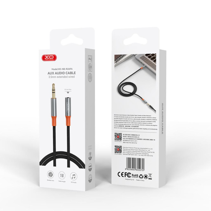 XO NB-R269A — надійний AUX аудіокабель - подовжувач довжиною 100 см, який дозволяє збільшити відстань між аудіо пристроями.