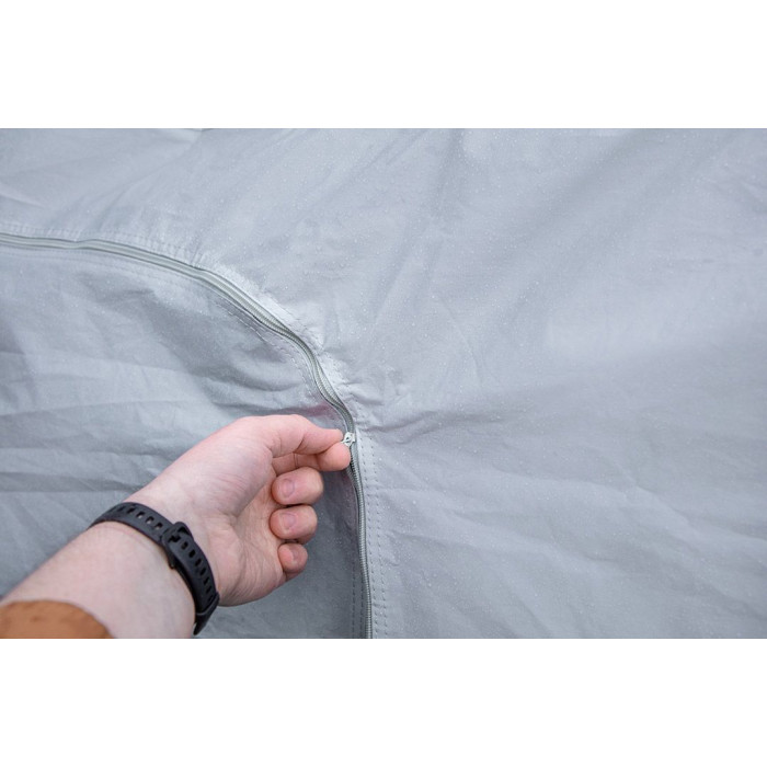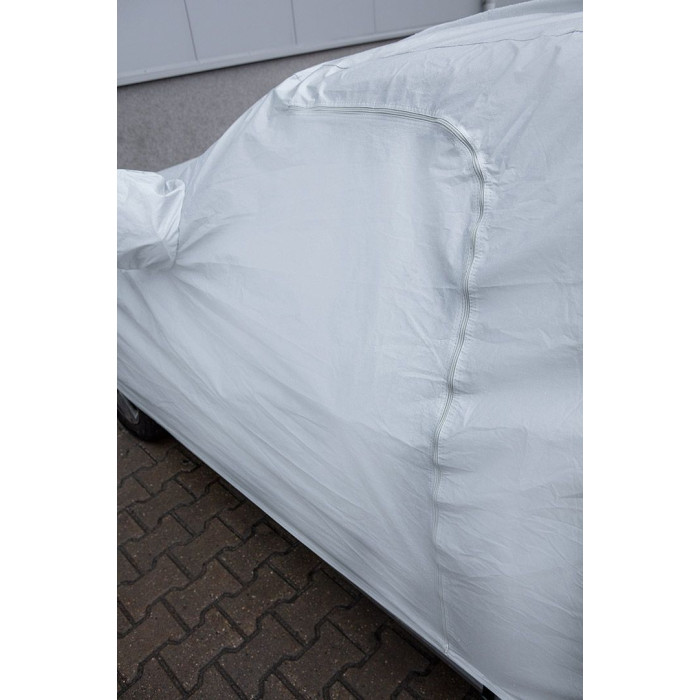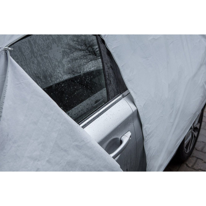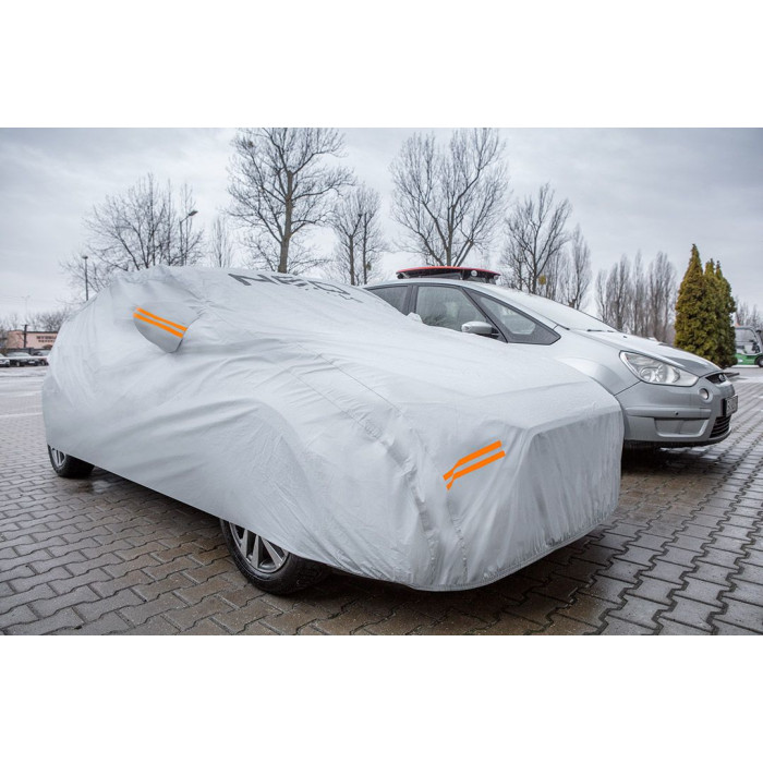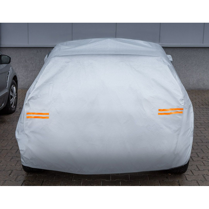 Багатошаровий чохол для автомобіля (2 шари, водонепроникний) XL, 10-475 від NEO TOOLS - це водонепроникний чохол розміром 5,3 х 1,8 х 1,2 м. Виготовлений з непроникного матеріалу PEVA з додаванням бавовни. Він має практичну застібку знизу для запобігання скручуванню та дверний отвір для швидкого доступу до автомобіля.