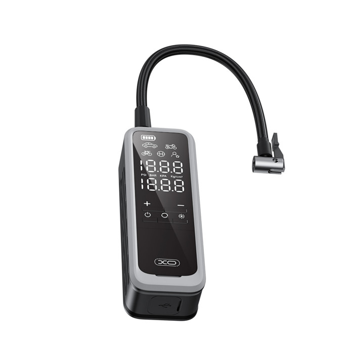 XO CZ018 - бездротовий автокомпресор, незамінний помічник для швидкого та надійного накачування в будь-яких умовах. Завдяки потужному двигуну дозволяє швидко надувати шини, м’ячі та інше, заощаджуючи твій час і зусилля.
