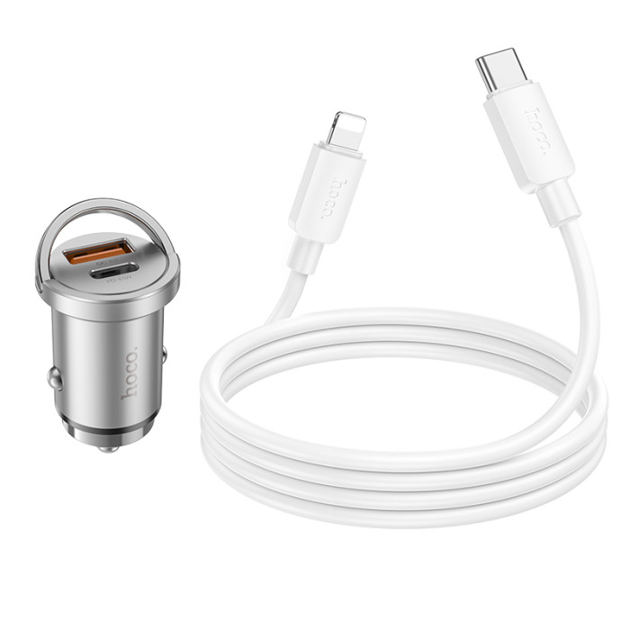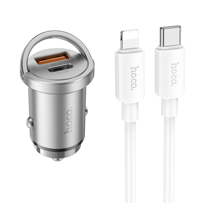 Автомобільний зарядний пристрій HOCO NZ10 Handy PD45W+QC3.0 car charger set(C to iP) Silver