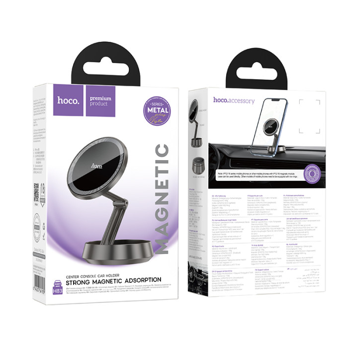 Автотримач для телефона HOCO H83 Metal ring magnetic car holder(center console) metal grey