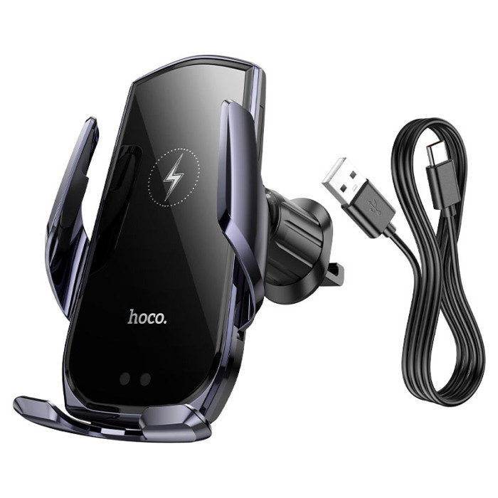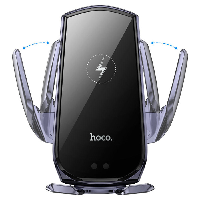 Автотримач для телефона з БЗП HOCO CA202 Plus Enlightener infrared induction wireless charging car holder(air outlet) Black metal gray