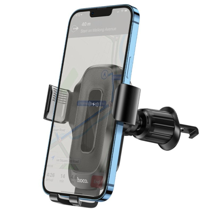 Автотримач для телефона з БЗП HOCO HW2 Wise automatic induction wireless fast charging car holder(air outlet) Black