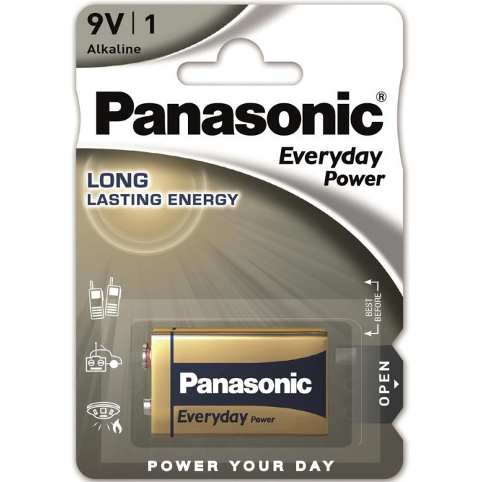 Батарейка Panasonic EVERYDAY POWER лужна 6LR61(6LF22, MN1604, MX1604, Крона) блістер, 1 шт.