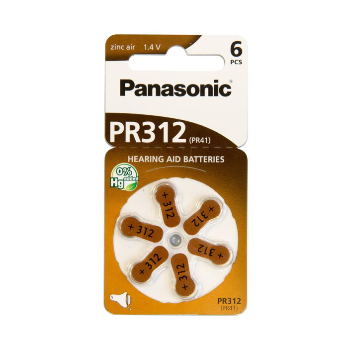 Батарейка Panasonic повітряно-цинкова PR312(312A, AC312E/EZ, PR312H, PR41, ZA312, DA312) блістер, 6 шт.