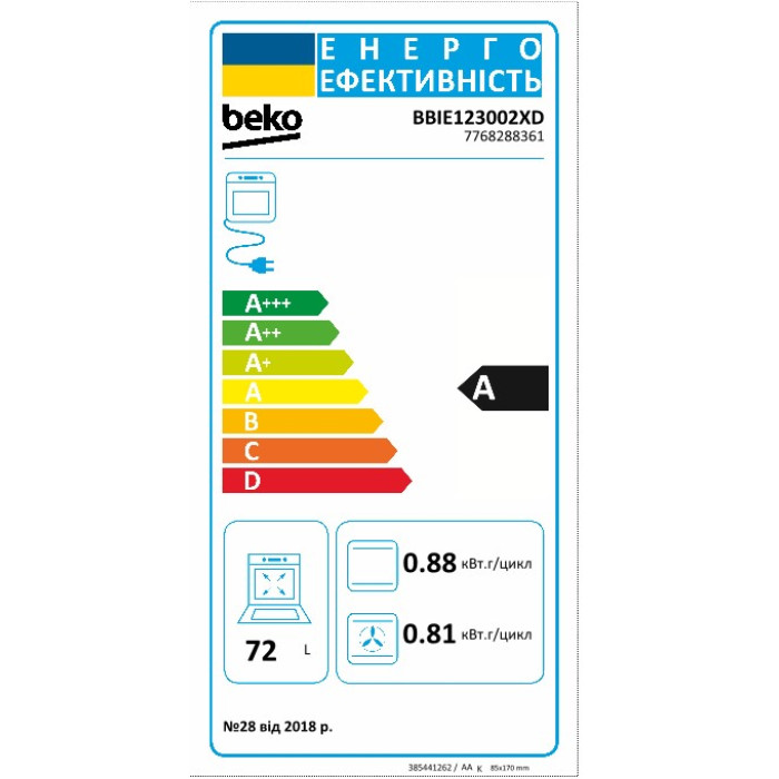 Beko Духова шафа електрична, 72л, A, конвекція, чорний