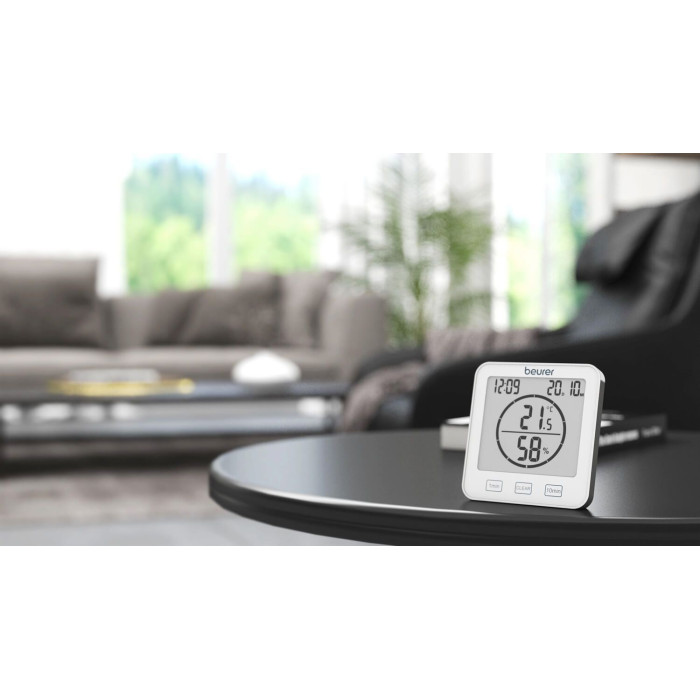 Beurer Термогігрометр, внутр. вимірювання, темп-ра, вологість, час, AAAx2, в комплекті, білий