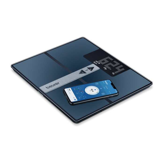Весы Beurer напольные, 180кг, аккумуляторные, подкл. к смартфону, сенс. управл., анализ тела, WiFi, USB-C, стекло, темно-синий (BF_980)