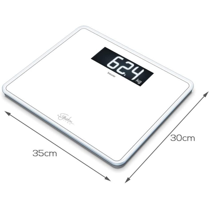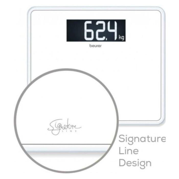 Скляні ваги насиченого чорного кольору Beurer GS 410 Signature Line — мінімалістичний дизайн і функціональність в одному пристрої! Точні дизайнерські ваги не тільки покажуть результати зважування, а й ідеально впишеться в інтер'єр вашого будинку як декоративний елемент. Велика платформа з міцного скла завтовшки 8 мм — комфортне й безпечне використання. Цифри збільшення розміру зі спеціально розробленим РК-шрифтом на сучасному чорному дисплеї з підсвіткою — значення ваги завжди можна легко прочитати навіть за низького освітлення.