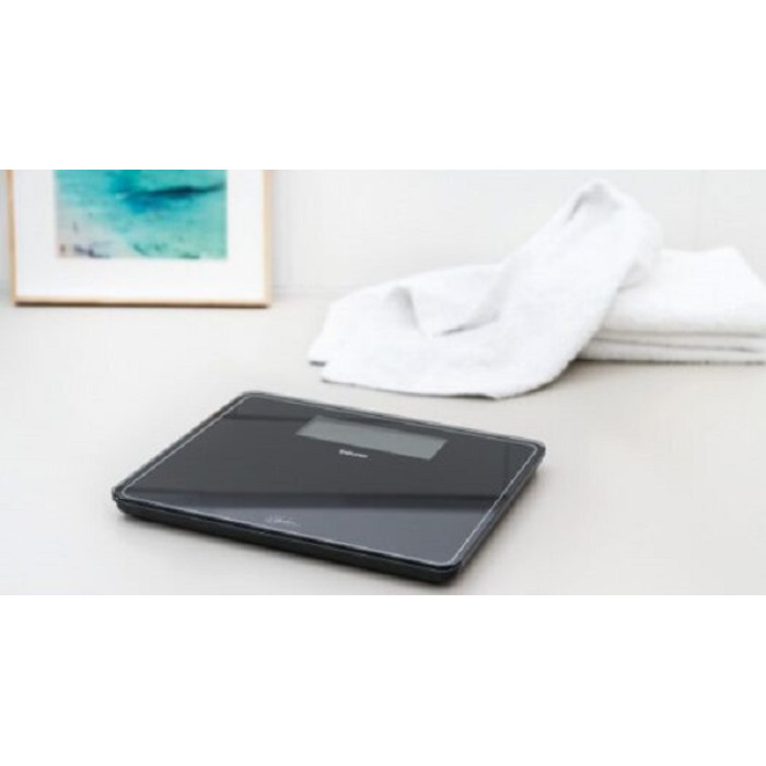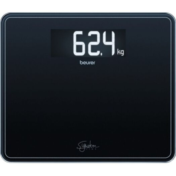 Скляні ваги насиченого чорного кольору Beurer GS 410 Signature Line — мінімалістичний дизайн і функціональність в одному пристрої! Точні дизайнерські ваги не тільки покажуть результати зважування, а й ідеально впишеться в інтер'єр вашого будинку як декоративний елемент. Велика платформа з міцного скла завтовшки 8 мм — комфортне й безпечне використання. Цифри збільшення розміру зі спеціально розробленим РК-шрифтом на сучасному чорному дисплеї з підсвіткою — значення ваги завжди можна легко прочитати навіть за низького освітлення.