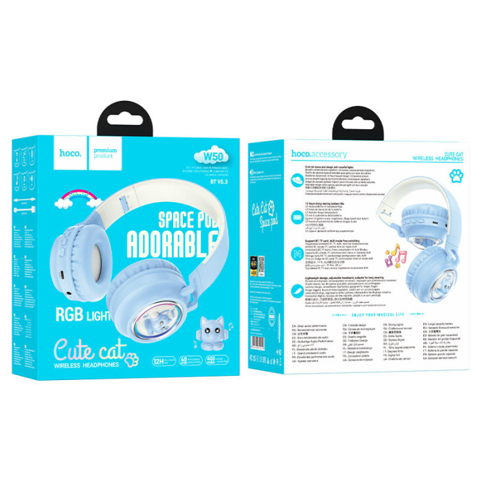 Бездротові накладні навушники HOCO W50 Cute fun BT headphones Blue