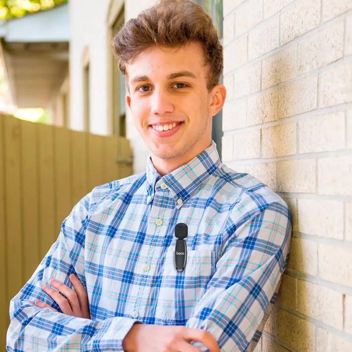 HOCO L15 iP Crystal Lavalier Wireless Digital Microphone Black — це подвійний бездротовий компактний петличний мікрофон, призначений для запису звуку. Основною особливістю Hoco L15 iP є його універсальне з'єднання через порт Lightning, що робить його сумісним із широким спектром пристроїв, таких як смартфони, планшети та інші пристрої, що підтримують цей тип роз'єму. Це забезпечує зручність використання та гнучкість при підключенні до різних пристроїв.Подвійний мікрофон Hoco L15 iP для айфона має високу чутливість, що дозволяє зафіксувати звук у високій якості. Він оснащений шумопоглинанням, яке допомагає усувати фонові шуми та створювати чистий і чіткий звуковий сигнал. Це особливо корисно під час запису відео, проведення інтерв'ю або створення аудіо контенту, де важливо мати ясний та професійний звук.Комплект поставки Hoco L15 iP для iPhone включає бездротовий передавач і приймач, які забезпечують стабільну і надійну передачу звуку на відстані до 15 метрів без перешкод. Він також має вбудовану літій-іонну акумуляторну батарею, що забезпечує тривалий час роботи без необхідності постійної заміни батарейок.ОСОБЛИВОСТІ:− Наднизька затримка 9 мс, радіус дії близько 15 м.