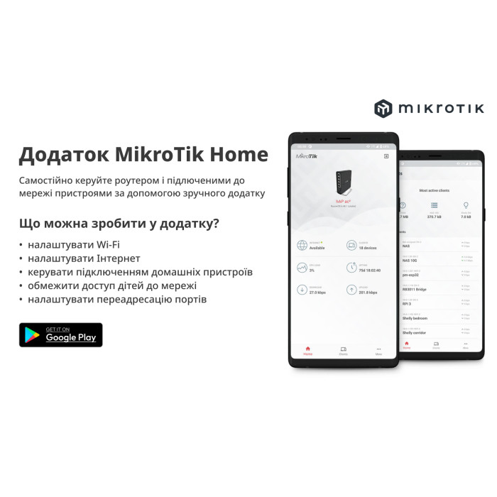 Додаток MikroTik Home дозволяє зручно керувати роутером і підключеними до мережі пристроями.