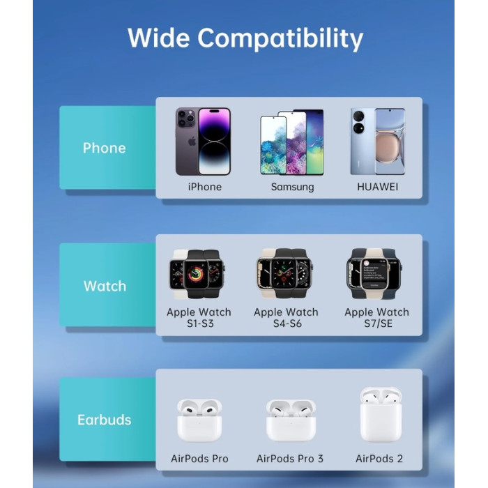 Завдяки сумісності з пристроями Qi Choetech T600 підтримує широкий спектр популярних смартфонів, розумних годинників і навушників.