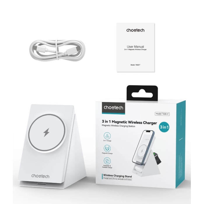 Представляємо Choetech T600 — революційний магнітний бездротовий зарядний пристрій 3-в-1, який зробить використання ваших пристроїв ще зручнішим та ефективнішим. Це поєднання функціональності, елегантності та інновацій. та естетичний дизайн. T600 та підніміть бездротову зарядку на новий рівень!