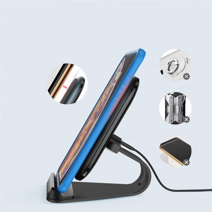 Корисний девайс для вас і вашого телефону. У вертикальному положенні Вам зручно бачити всі повідомлення і повноцінно використовувати телефон. Привабливий корпус з покриттям Soft Touch робить його відмінним від інших бездротових зарядних пристроїв. Нековзний гумовий килимок буде тримати Ваш телефон стійко незалежно від його розміру. Широкий діапазон зарядки - 2 котушки. Бездротова конструкція забезпечує вертикальну і горизонтальну зарядку, ідеально підходить для читання книг і рецептів, перегляду фільмів, текстових повідомлень, здійснення телефонних дзвінків в режимі гучного зв’язку, живого спілкування і всього іншого.