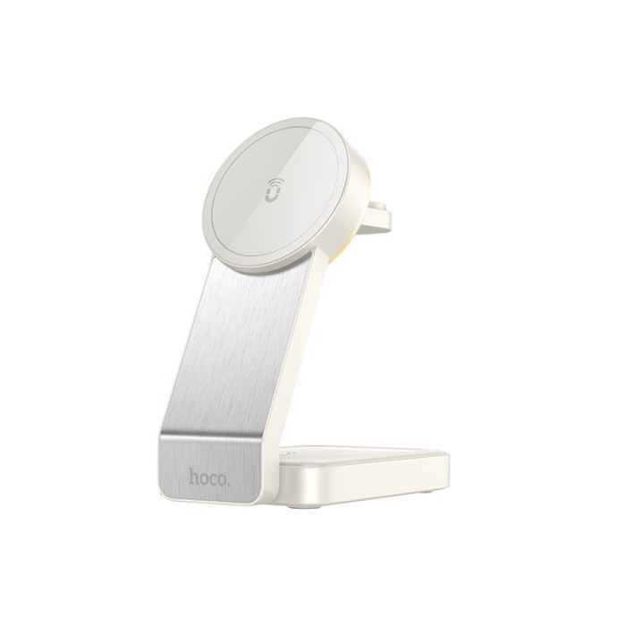 Бездротовий зарядний пристрій HOCO CQ3 Motorcycle folding 3-in-1 magnetic wireless fast charger Milky White