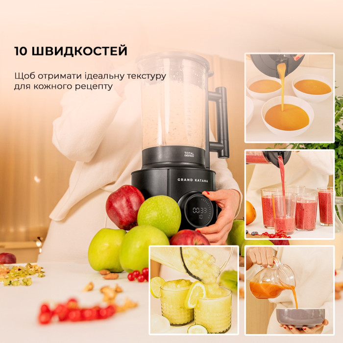 Молочні коктейлі, смузі, шийки, лимонад? Ніщо не встоїть перед силою Grand Katana. Відкрийте для себе його революційні технології та відкрийте свій творчий потенціал на кухні.