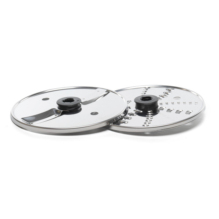 - Два двосторонні диски для шинкування, які дозволяють виконувати як крупну, так і тонку нарізку.
