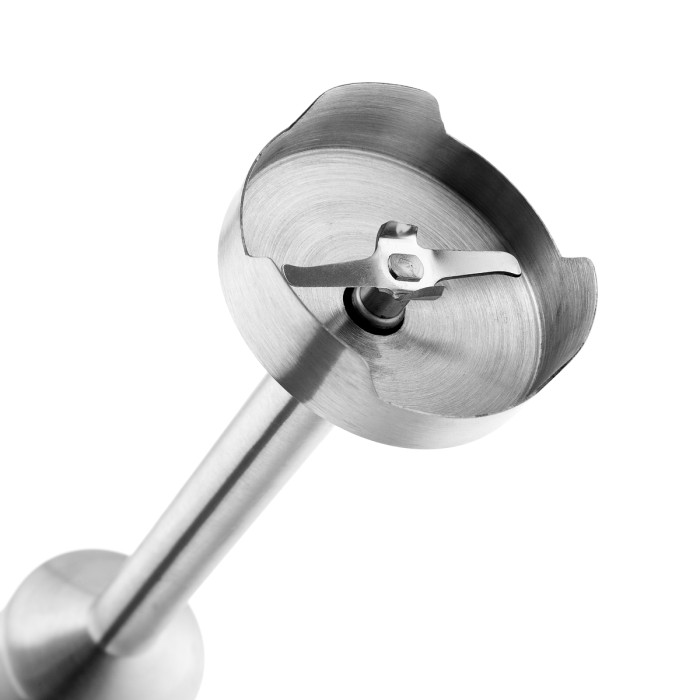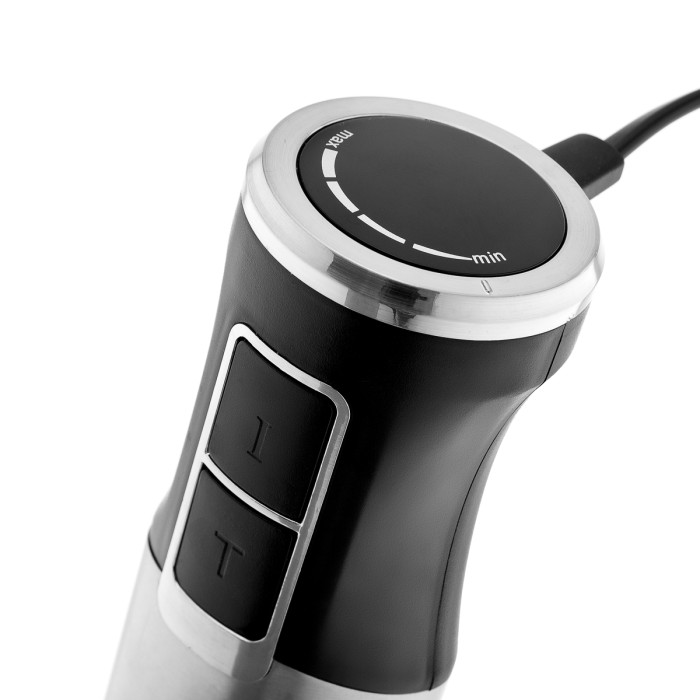 Простий, зручний у використанні занурювальний блендер відноситься до категорії бюджетних пристроїв та підійде тим покупцям, які шукають модель без насадок. У комплектації немає ні вінчика, ні подрібнювача, ні якихось інших насадок — тільки сам блендер і мірний стакан об'ємом 700 мл, в якій можна відміряти необхідну кількість інгредієнтів, змішувати їх та зберігати готову їжу.