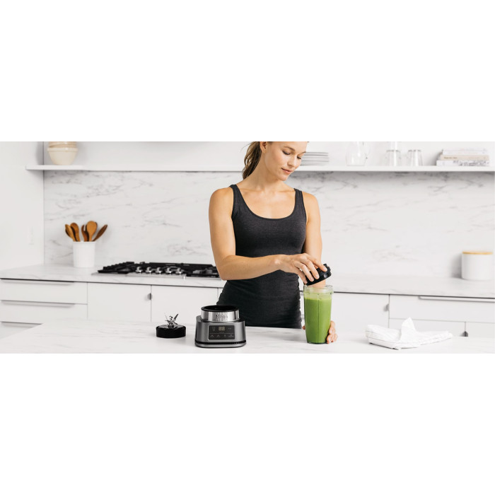 З блендером Ninja ви отримаєте смачні десерти, соуси, заправки, сорбети та коктейлі. Потужний двигун 1100 Вт і унікальна конструкція лез дають змогу поєднувати свіжі та заморожені інгредієнти, а книга з рецептами надихне вас на створення найяскравіших шедеврів.