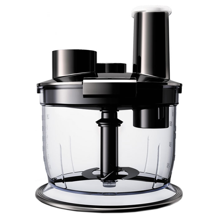 Ергономічна ручка легко поміщається в руці, а ногу з неіржавкої сталі, стакан і чашу для подрібнених продуктів можна мити в посудомийній машині. Занурювальний блендер можна акуратно розмістити на прикріпленій до стіни підставці для економії місця на кухонному столі. Завдяки цьому прилад завжди буде під рукою.