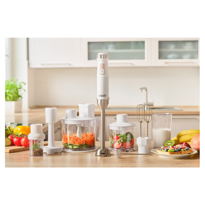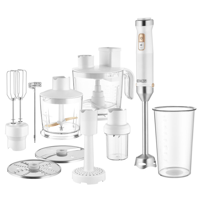 Блендер Sencor заглибний 1500Вт, 10в1, чаша-800мл, млин для спецій, спінювач молока, білий