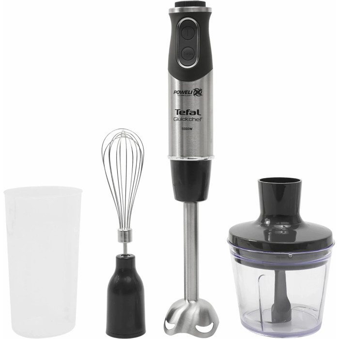 Блендер Tefal заглибний Quickchef 1000Вт, 3в1, чаша-800мл, чопер-500мл, турборежим, сріблясто-чорний