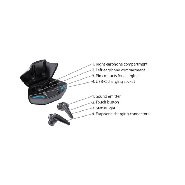 Навушники також мають мікрофон, тому ви можете легко здійснювати голосові дзвінки під час гри (наприклад, у Discord), а також телефонувати. У навушниках є функціональна сенсорна кнопка, що дозволяє легко керувати ; включаючи: відповідь на вхідні дзвінки, завершення дзвінків і регулювання гучності.