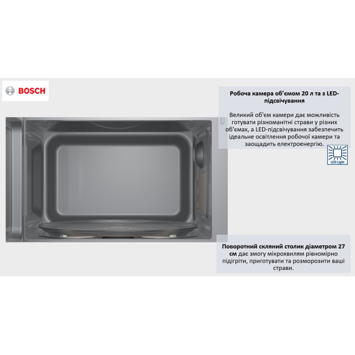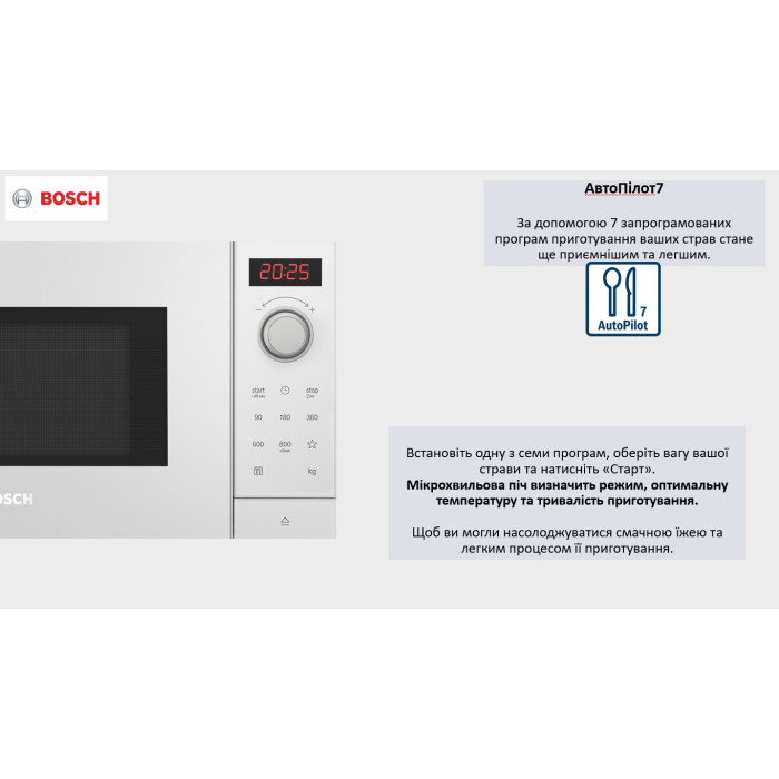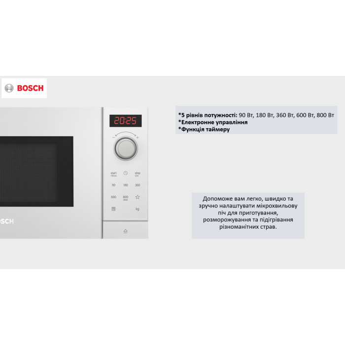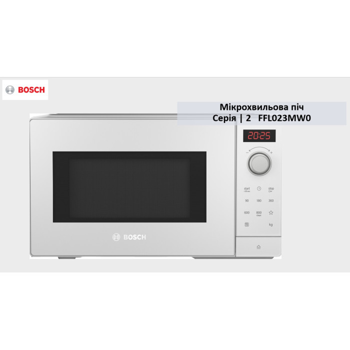 Bosch Мікрохвильова піч, 20л, ел. управл., 800Вт, білий