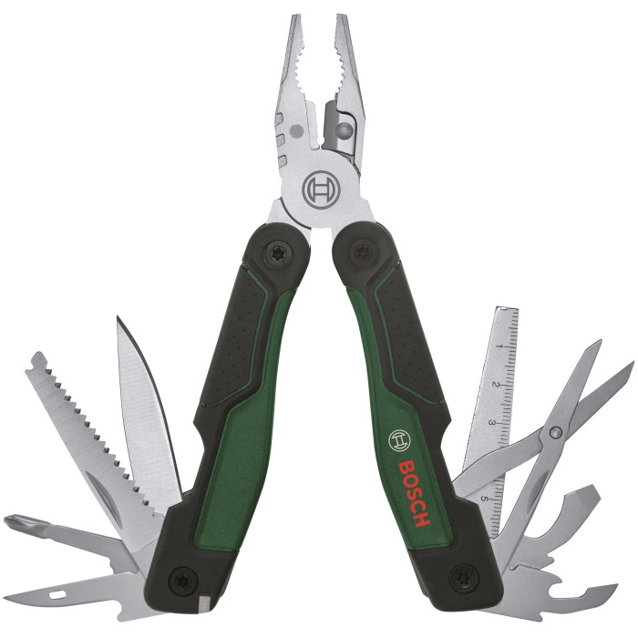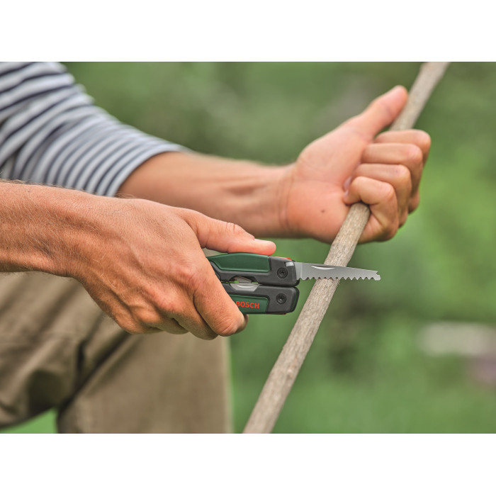 Вам потрібно видалити маленькі цвяхи, крихітні гвинти або розпиляти невеликі шматки деревини? Багатофункціональний інструмент Bosch 16 в 1 - незамінний помічник у майстерні, на кухні або на відпочинку на природі. Цей мультитул ефективний і довговічний: всі інструменти виготовлені з високоякісної високовуглецевої нержавіючої сталі, що робить їх міцними та стійкими до іржі.