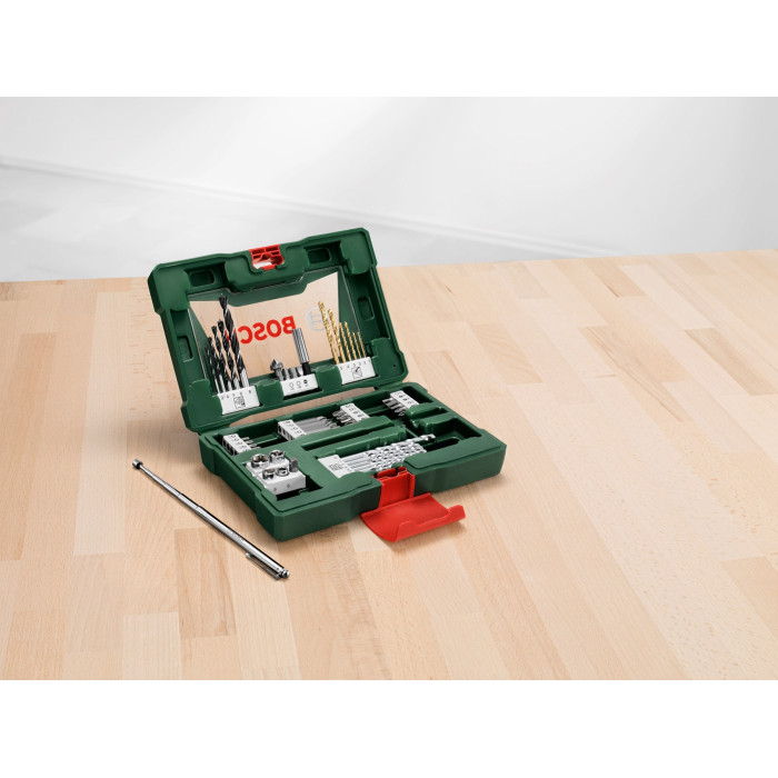 Bosch V-Line (2.607.017.314) - набір оснащення, що складається з 48 предметів. Його можна назвати універсальним, тому в його склад входять всі необхідні матеріали, торцеві головки і біти, а також зенкер, універсальний магнітний тримач. Все це повинно знаходитись під рукою під час ремонту або будівельних робіт.