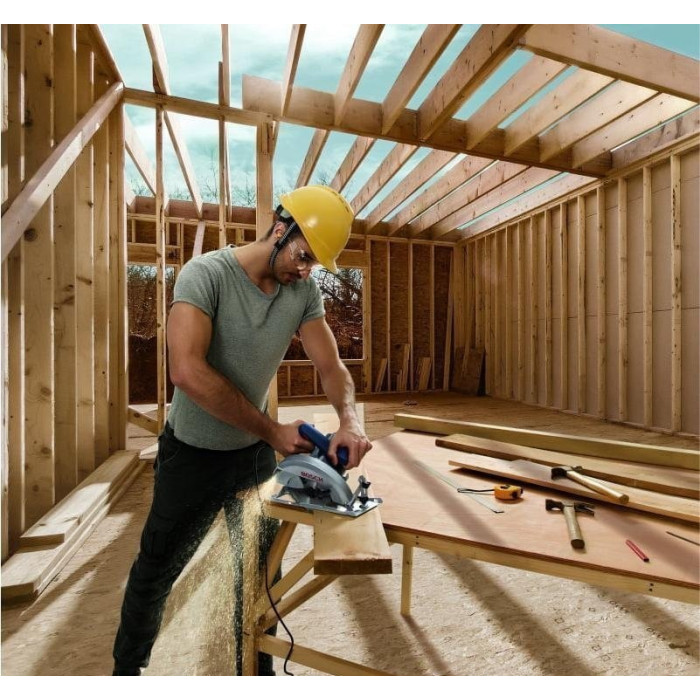 Циркулярна пилка Bosch GKS 140 зі швидкістю обертання диска 6200 об/хв забезпечує рівний різ і практично не потребує зусиль. За рахунок продуманої конструкції інструмент зручний у використанні.