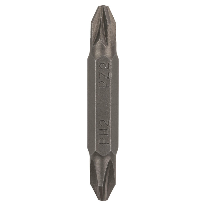 Подвійна біта Bosch PH2/PZ2, 45 мм (2609255955) - це високоякісний інструмент для шуруповертів. Вона має двосторонній наконечник з хрестоподібними відгуками PH2 та PZ2, що дозволяє використовувати її для різних типів шурупів.