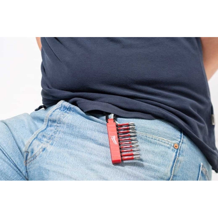 Набір ударних біт Milwaukee SHOCKWAVE Impact Duty з карабіном, 10 шт.— це високоякісний комплект, розроблений для професіоналів, які працюють з ударними шуруповертами та шуруповертами. Технологія SHOCK ZONE - спеціальна геометрія зони поглинання ударів знижує навантаження на наконечник, що зменшує ризик поломки та підвищує довговічність біти.